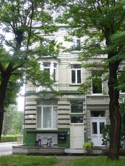 De afbeelding 'Hoekhuis ontworpen door P. Buyck' gemaakt door Verhelst, Julie wordt ter beschikking gesteld door Agentschap Onroerend Erfgoed (AOE) onder de volgende voorwaarden: Modellicentie voor gratis hergebruik, Naamsvermelding-GelijkDelen 4.0 Internationaal.