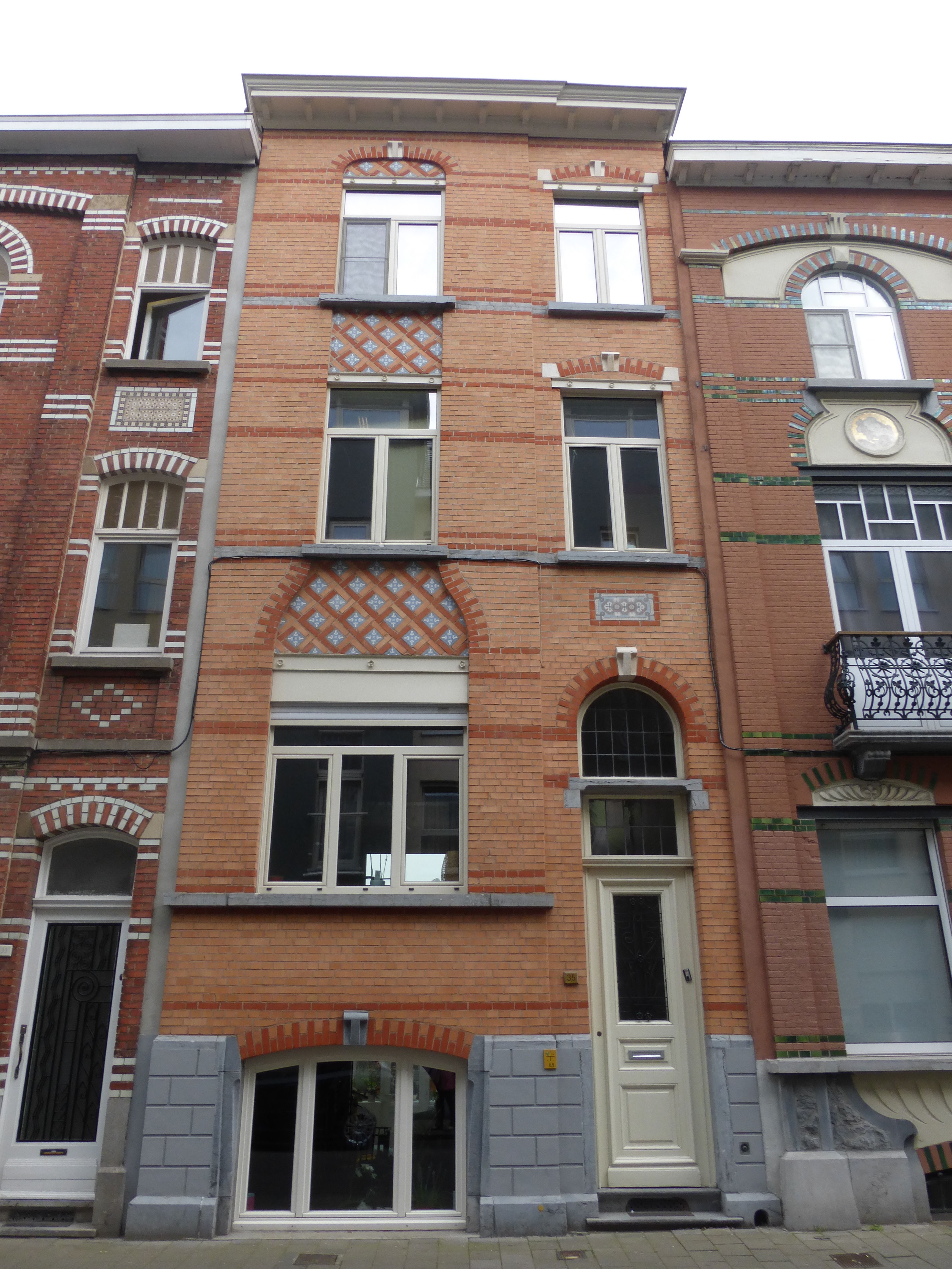 De afbeelding 'Burgerhuis ontworpen door Edmond Maes' gemaakt door Verhelst, Julie wordt ter beschikking gesteld door Agentschap Onroerend Erfgoed (AOE) onder de volgende voorwaarden: Modellicentie voor gratis hergebruik, Naamsvermelding-GelijkDelen 4.0 Internationaal.