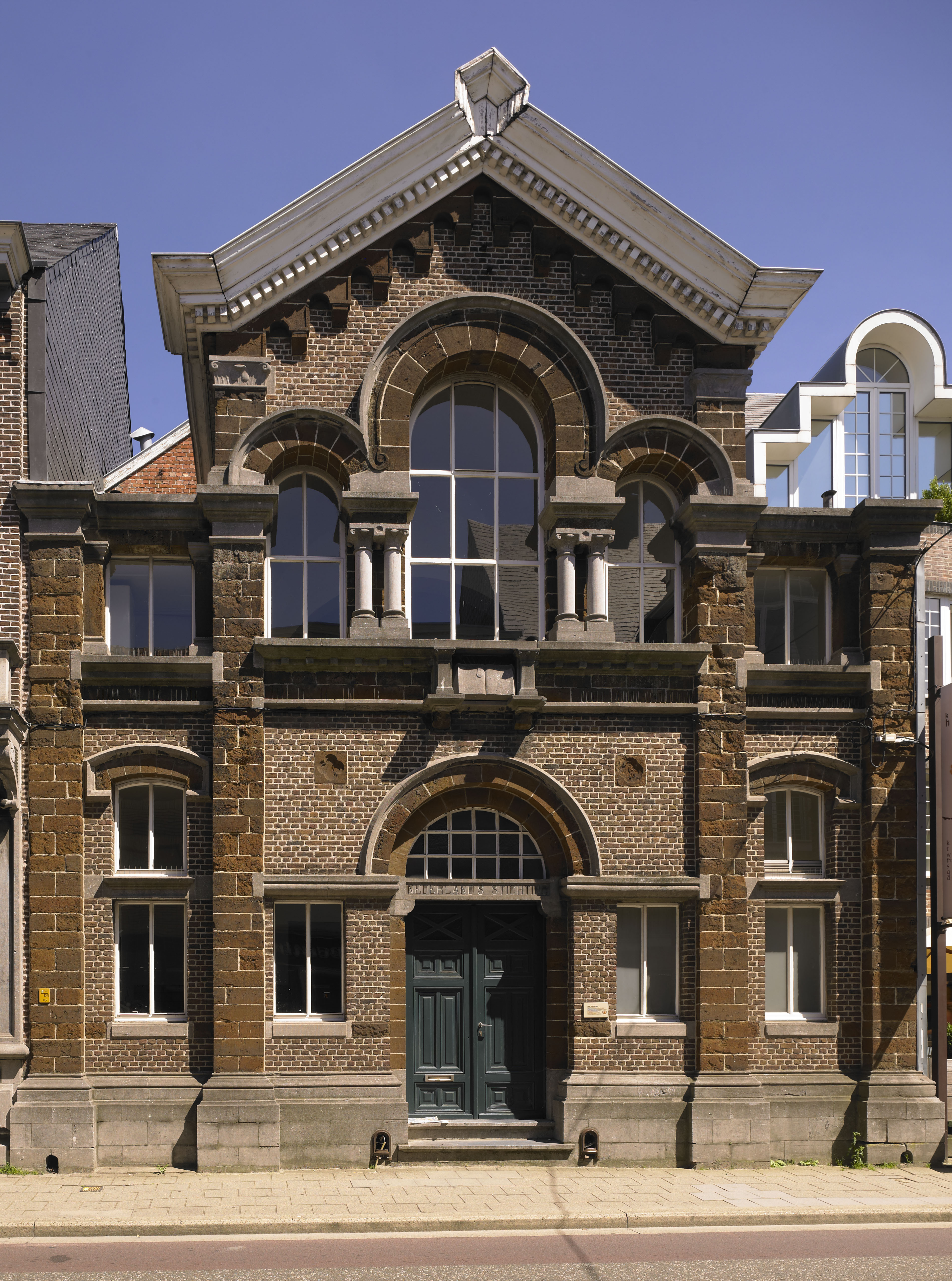 De afbeelding 'Verenigingslokaal en protestantse kerk van de Nederlandse Stichting' gemaakt door Vandevorst, Kris wordt ter beschikking gesteld door Agentschap Onroerend Erfgoed (AOE) onder de volgende voorwaarden: Modellicentie voor gratis hergebruik, Naamsvermelding-GelijkDelen 4.0 Internationaal.