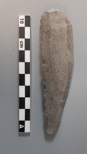 De afbeelding 'Neolithische klingschrabber Meerdaalwoud' gemaakt door Meylemans, Erwin wordt ter beschikking gesteld door Agentschap Onroerend Erfgoed (AOE) onder de volgende voorwaarden: Modellicentie voor gratis hergebruik, Naamsvermelding-GelijkDelen 4.0 Internationaal.