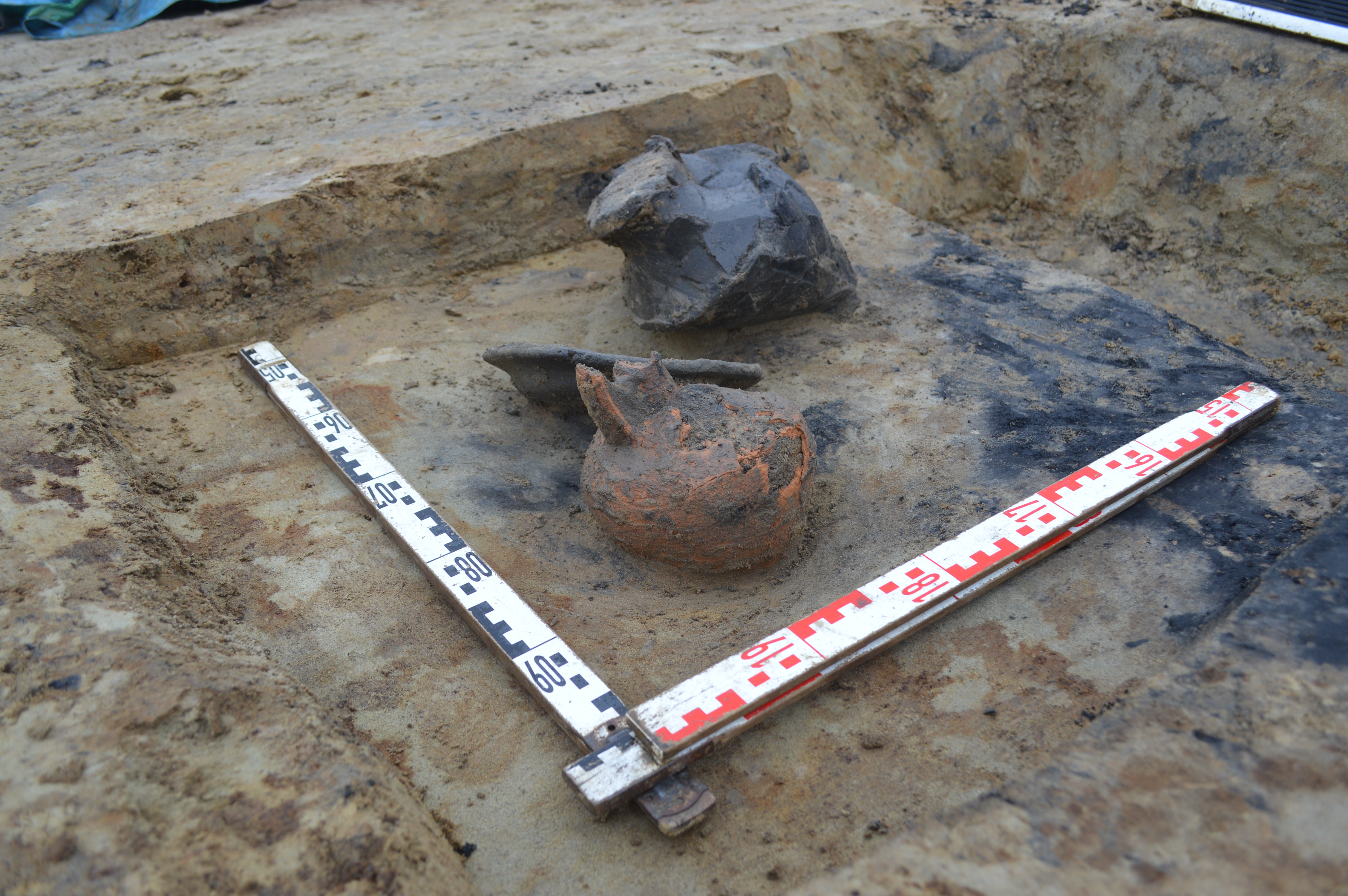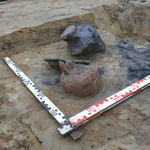 Beeld van brandrestengraf tijdens de archeologische opgraving.