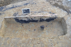 Beeld van brandrestengraf tijdens de archeologische opgraving.