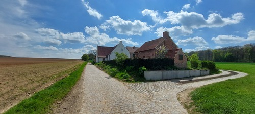 De afbeelding 'Hoeve Rachierhof en omgeving' gemaakt door Berwaerts, Koen wordt ter beschikking gesteld door Agentschap Onroerend Erfgoed (AOE) onder de volgende voorwaarden: Modellicentie voor gratis hergebruik, Naamsvermelding-GelijkDelen 4.0 Internationaal.