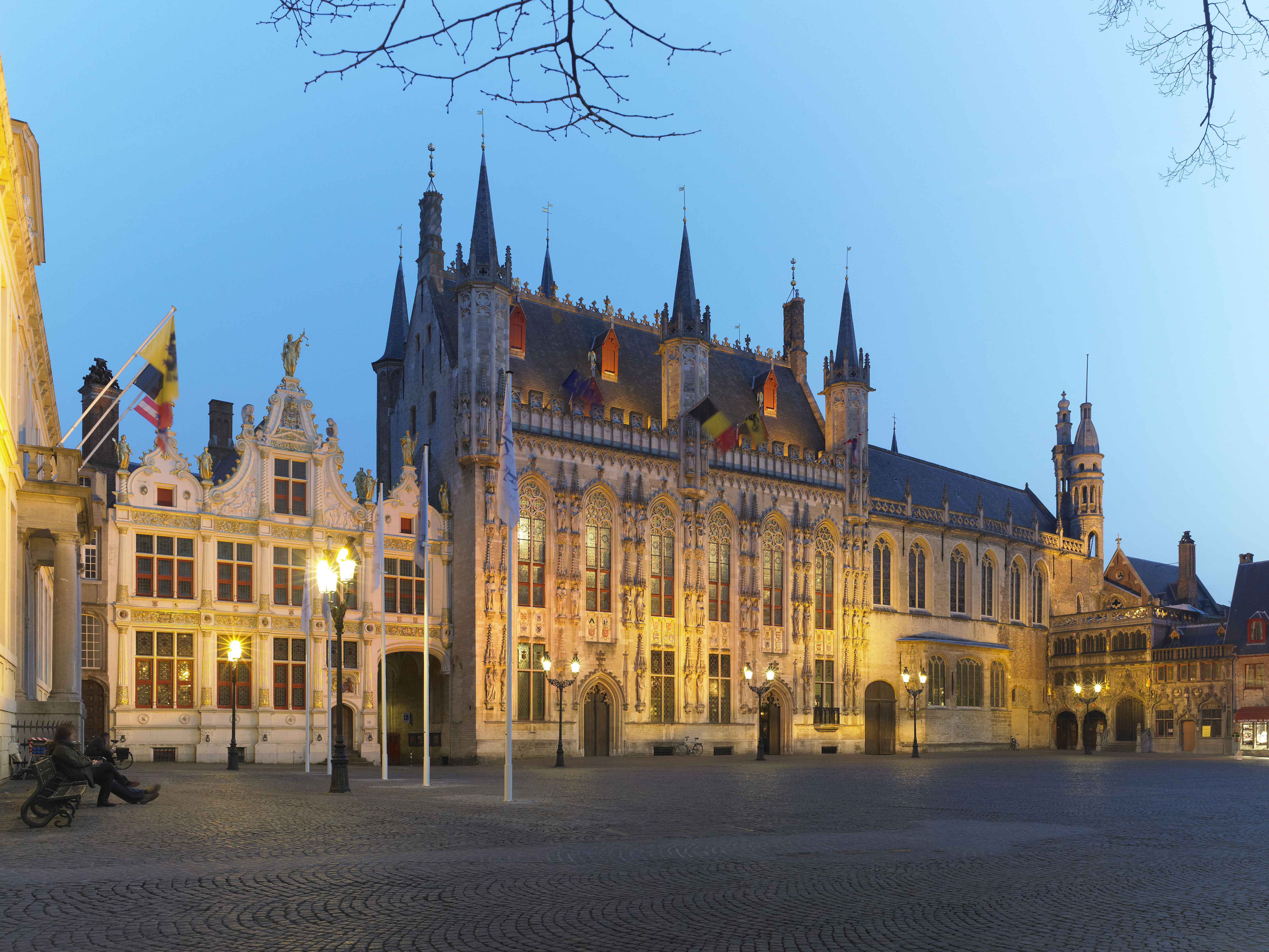 De Burg met centraal het stadhuis, links de Griffie van het Brugse Vrije en rechts de Basiliek van het Heilig Bloed