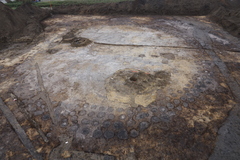 Palenkransen van een grafcirkel uit de middenbronstijd, opgraving aan de Schaarbeekstraat in Melsele (2022).