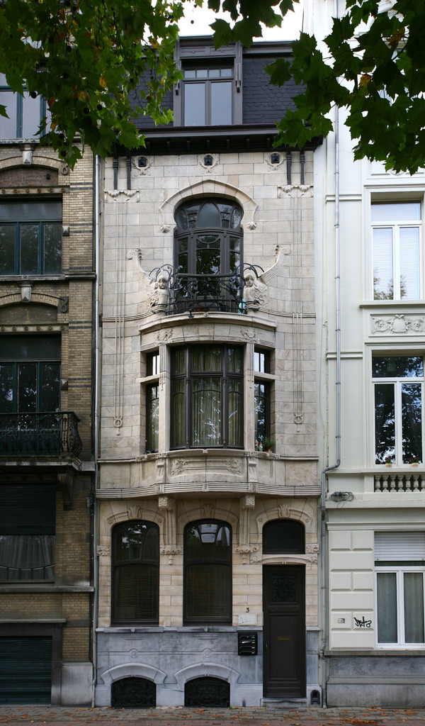De afbeelding 'Twee burgerhuizen in art-nouveaustijl' gemaakt door Vandevorst, Kris wordt ter beschikking gesteld door Agentschap Onroerend Erfgoed (AOE) onder de volgende voorwaarden: Modellicentie voor gratis hergebruik, Naamsvermelding-GelijkDelen 4.0 Internationaal.