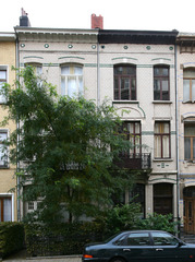 De afbeelding 'Gekoppelde burgerhuizen in art-nouveaustijl' gemaakt door Vandevorst, Kris wordt ter beschikking gesteld door Agentschap Onroerend Erfgoed (AOE) onder de volgende voorwaarden: Modellicentie voor gratis hergebruik, Naamsvermelding-GelijkDelen 4.0 Internationaal.