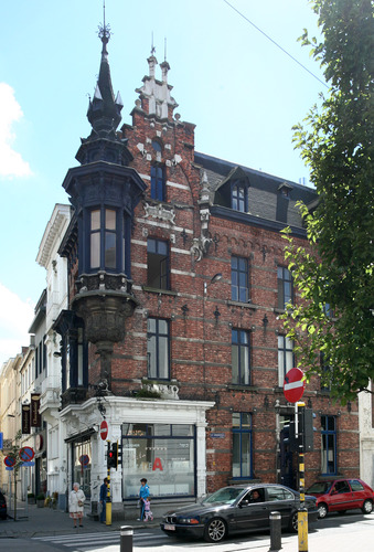 De afbeelding 'Winkelpand in neo-Vlaamserenaissance-stijl' gemaakt door Vandevorst, Kris wordt ter beschikking gesteld door Agentschap Onroerend Erfgoed (AOE) onder de volgende voorwaarden: Modellicentie voor gratis hergebruik, Naamsvermelding-GelijkDelen 4.0 Internationaal.