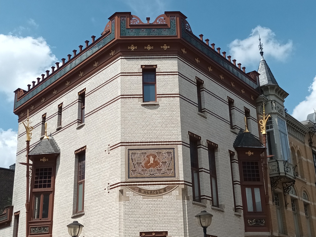De afbeelding 'Ensemble van vier hoekhuizen Herfst, Winter, Zomer en Lente' gemaakt door Hooft, Elise wordt ter beschikking gesteld door Agentschap Onroerend Erfgoed (AOE) onder de volgende voorwaarden: Modellicentie voor gratis hergebruik, Naamsvermelding-GelijkDelen 4.0 Internationaal.