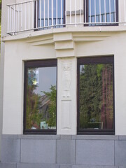 De afbeelding 'Twee-onder-een-kapvilla in art deco' gemaakt door Kennes, Hilde wordt ter beschikking gesteld door Agentschap Onroerend Erfgoed (AOE) onder de volgende voorwaarden: Modellicentie voor gratis hergebruik, Naamsvermelding-GelijkDelen 4.0 Internationaal.