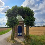 De afbeelding 'Wegkapel met twee lindes' gemaakt door Claeys, Dries wordt ter beschikking gesteld door Agentschap Onroerend Erfgoed (AOE) onder de volgende voorwaarden: Modellicentie voor gratis hergebruik, Naamsvermelding-GelijkDelen 4.0 Internationaal.
