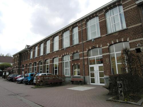 De afbeelding 'Schoolgebouw' gemaakt door Kennes, Hilde wordt ter beschikking gesteld door Agentschap Onroerend Erfgoed (AOE) onder de volgende voorwaarden: Modellicentie voor gratis hergebruik, Naamsvermelding-GelijkDelen 4.0 Internationaal.