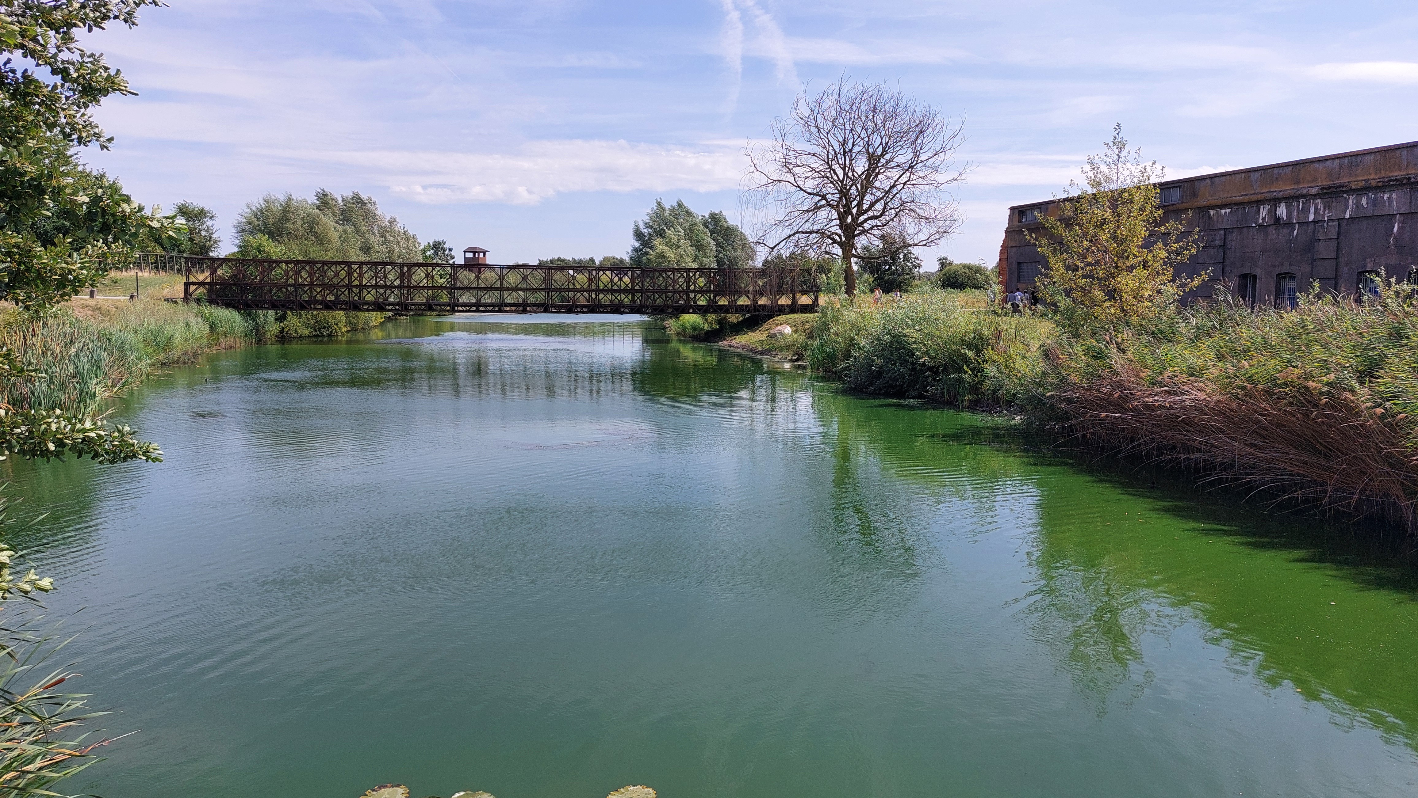Ten oosten van de noordelijke toegang: baileybrug (vlotbrug) bij het einde van de bezetting (1944) gebouwd door het Belgische leger om de toegang tot het fort te vergemakkelijken.
