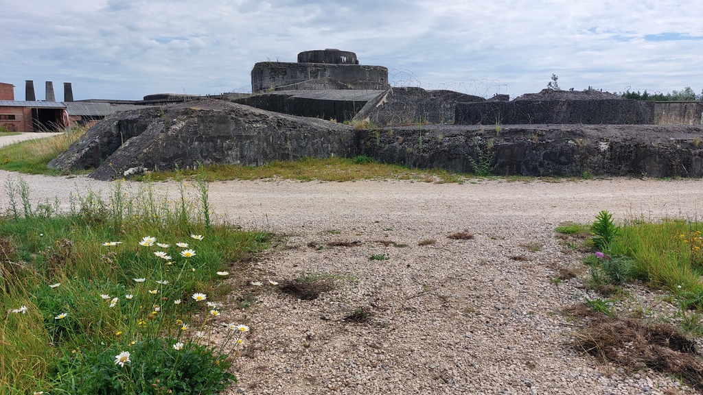Betonnen geschutkoepel en gangen van het fort van Breendonk. Normaal zijn deze gebouwen bedekt onder een dikke laag aarde om de inslag van afgeschoten projectielen op te vangen. Het fort van Breendonk is het enige dat geen aarden wallen meer heeft. De gevangenen van Breendonk waren immers verplicht om de aarde af te graven: een hard labeur.
