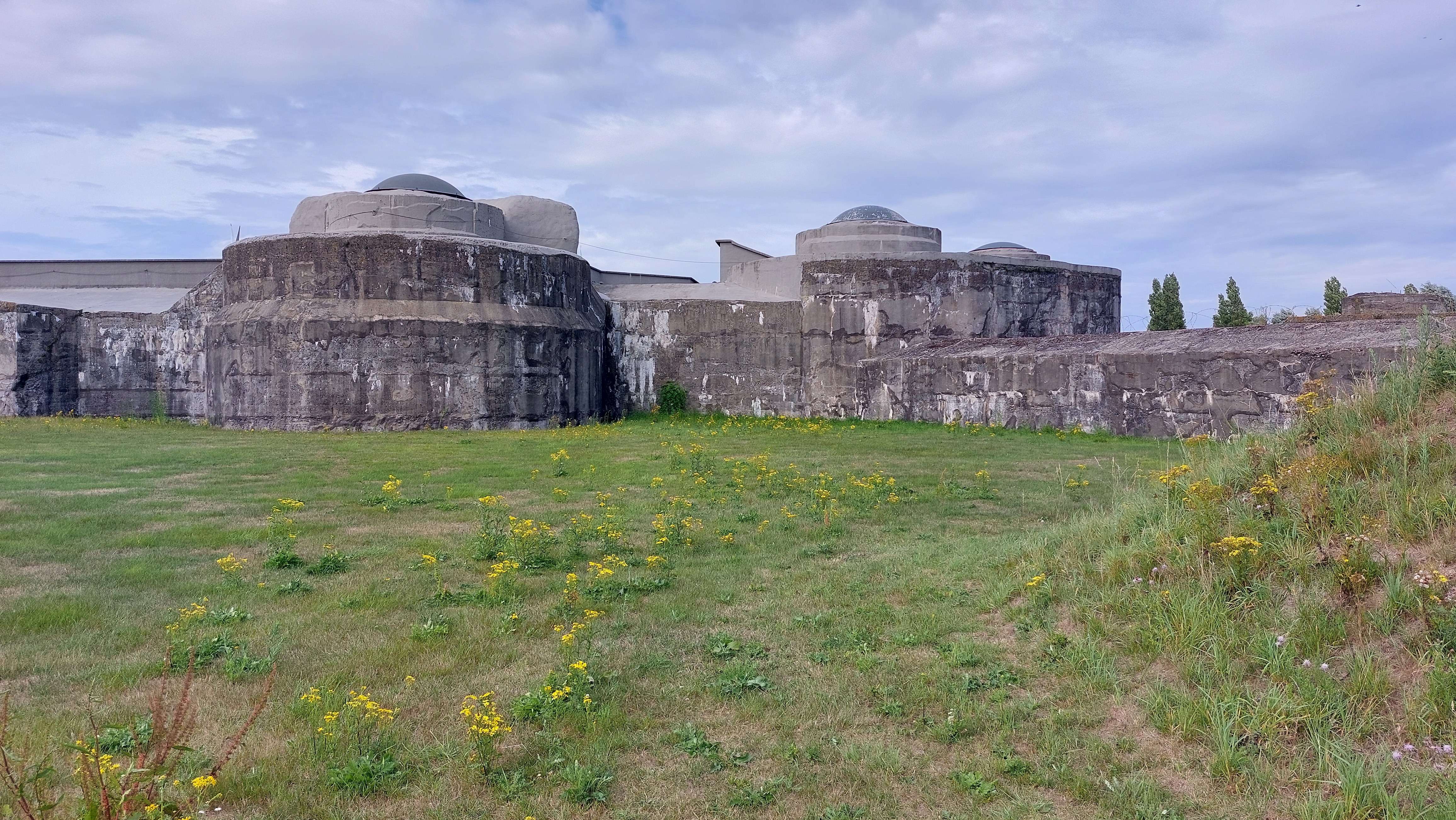 Betonnen geschutkoepels en gangen van het fort van Breendonk. Normaal zijn deze gebouwen bedekt onder een dikke laag aarde om de inslag van afgeschoten projectielen op te vangen. Het fort van Breendonk is het enige dat geen aarden wallen meer heeft. De gevangenen van Breendonk waren tijdens de tweede wereldoorlog immers verplicht om de aarde af te graven: een hard labeur.