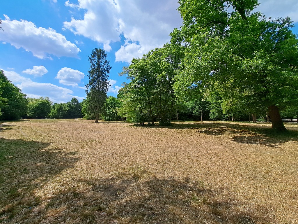 Zicht op het park van vroeger landhuis De Kollebloem dat op een rivierduin werd aangelegd. Park met talrijke aanplant van Acacia (Robinia pseudoacacia). Tegenwoordig een publiek park. bij het buurthuis De Kollebloem.