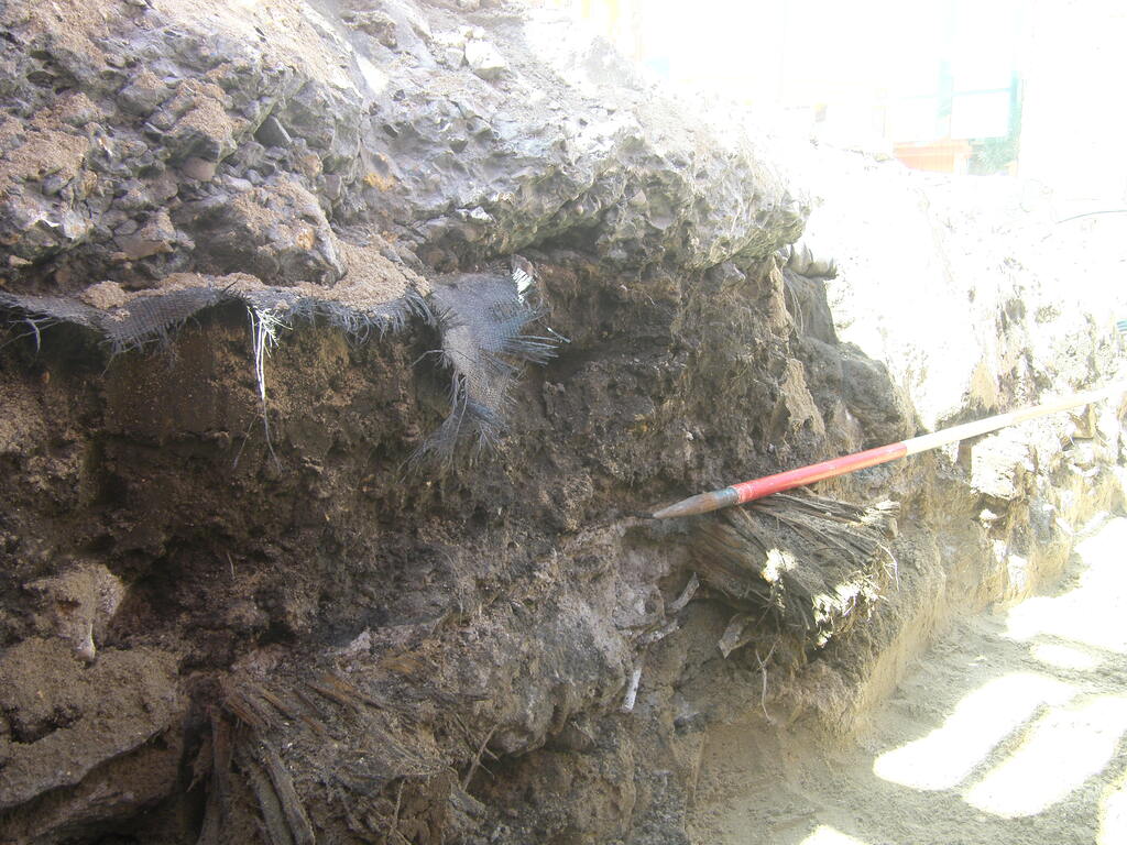 De afbeelding 'Overzicht rioleringssleuf' gemaakt door Dewilde, Marc wordt ter beschikking gesteld door Agentschap Onroerend Erfgoed (AOE) onder de volgende voorwaarden: Modellicentie voor gratis hergebruik, Naamsvermelding-GelijkDelen 4.0 Internationaal.