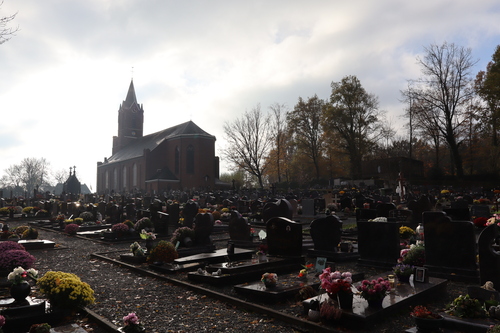 De afbeelding 'Parochiekerk Sint-Martinus met kerkhof' gemaakt door Sys, Annelien wordt ter beschikking gesteld door Agentschap Onroerend Erfgoed (AOE) onder de volgende voorwaarden: Modellicentie voor gratis hergebruik, Naamsvermelding-GelijkDelen 4.0 Internationaal.
