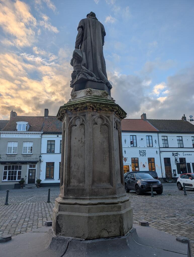 De afbeelding 'Beeld van Jacob van Maerlant' gemaakt door Decoodt, Hannelore wordt ter beschikking gesteld door Agentschap Onroerend Erfgoed (AOE) onder de volgende voorwaarden: Modellicentie voor gratis hergebruik, Naamsvermelding-GelijkDelen 4.0 Internationaal.