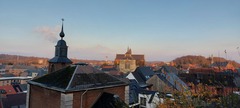 Zicht op Allerheiligenkapel, parochiekerk Sint-Sulpitius en Sint-Dionysius, en Kruisherenkerk