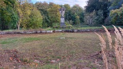 Bassin met Christusbeeld. Het bassin is een parkelement uit de tijd van het kasteeldomein (18de of 19de eeuw). Het Christusbeeld is een latere toevoeging van na 1904 en verwijst naar de tijd dat de Broeders van de Christelijke Scholen het domein naar een scholensite omvormden.