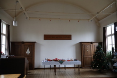 De afbeelding 'Oude protestantse kerk' gemaakt door De Houwer, Veerle wordt ter beschikking gesteld door Agentschap Onroerend Erfgoed (AOE) onder de volgende voorwaarden: Modellicentie voor gratis hergebruik, Naamsvermelding-GelijkDelen 4.0 Internationaal.
