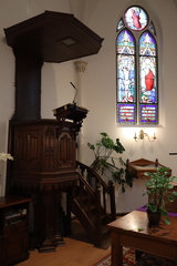 De afbeelding 'Nieuwe protestantse kerk en kerkhof ' gemaakt door De Houwer, Veerle wordt ter beschikking gesteld door Agentschap Onroerend Erfgoed (AOE) onder de volgende voorwaarden: Modellicentie voor gratis hergebruik, Naamsvermelding-GelijkDelen 4.0 Internationaal.