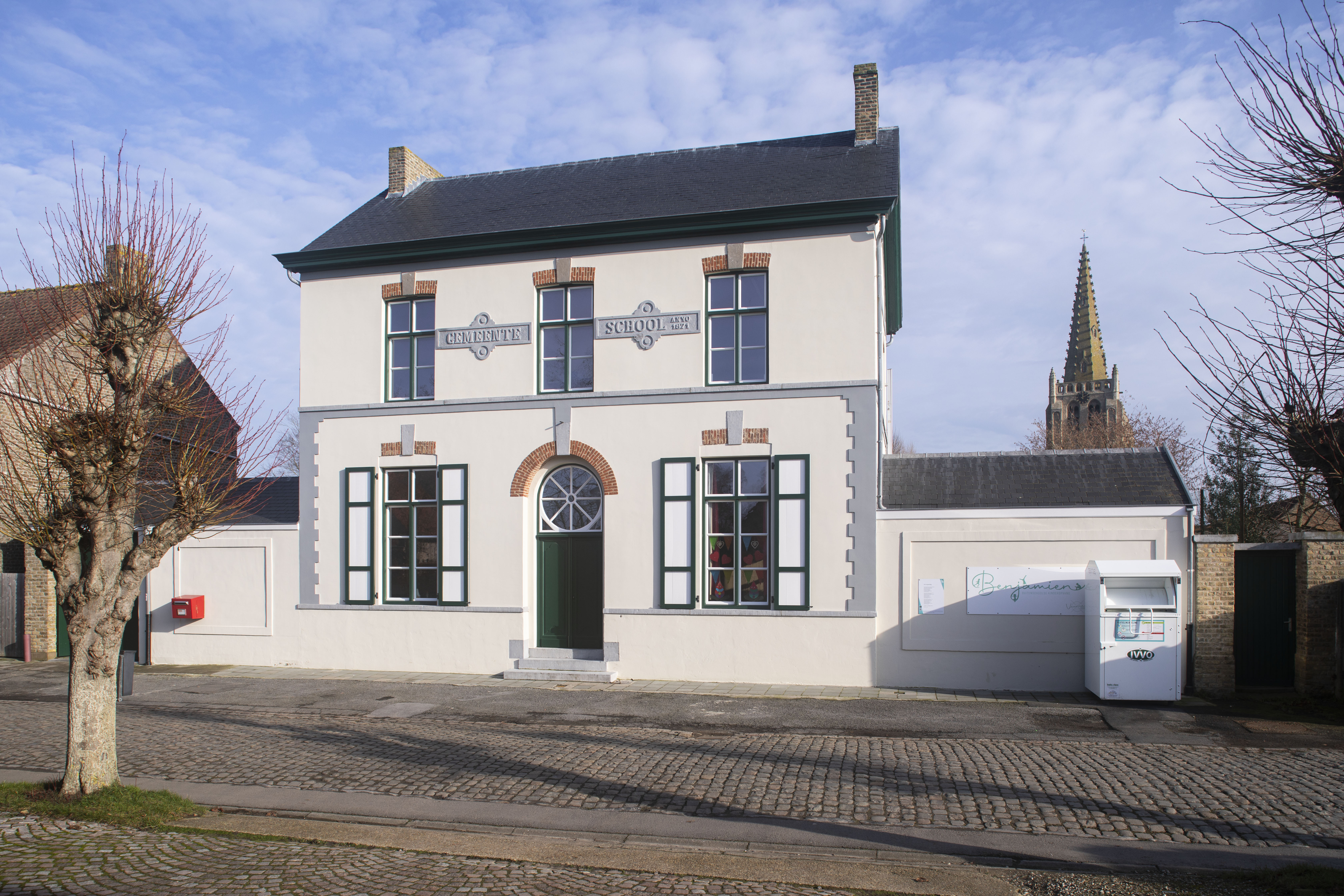 De afbeelding 'Gemeenteschool' gemaakt door Vandevorst, Kris wordt ter beschikking gesteld door Agentschap Onroerend Erfgoed (AOE) onder de volgende voorwaarden: Modellicentie voor gratis hergebruik, Naamsvermelding-GelijkDelen 4.0 Internationaal.