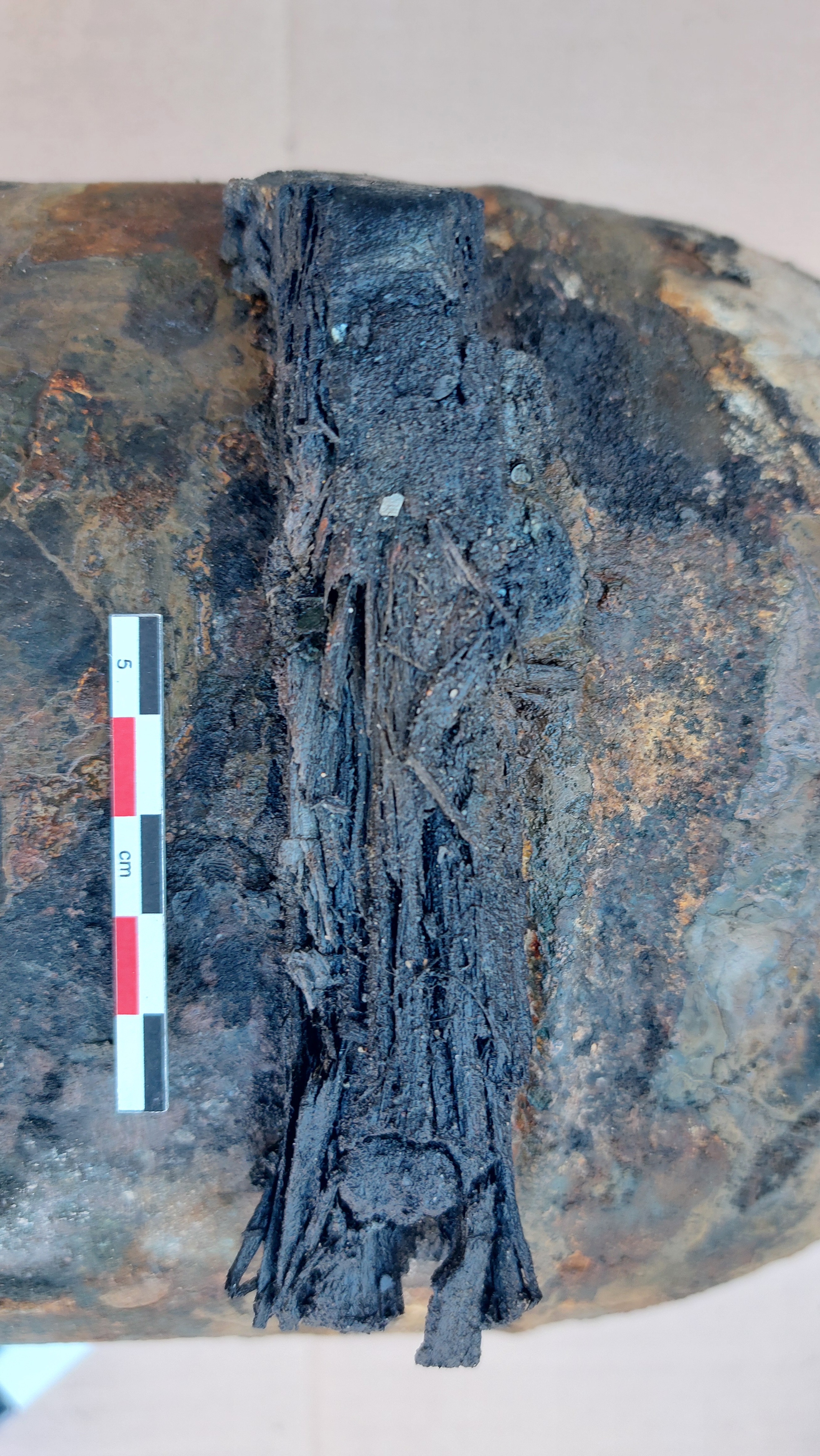 Details van de opschriften op een Britse luchtcilinder afkomstig uit een jachtvliegtuig van WO II.