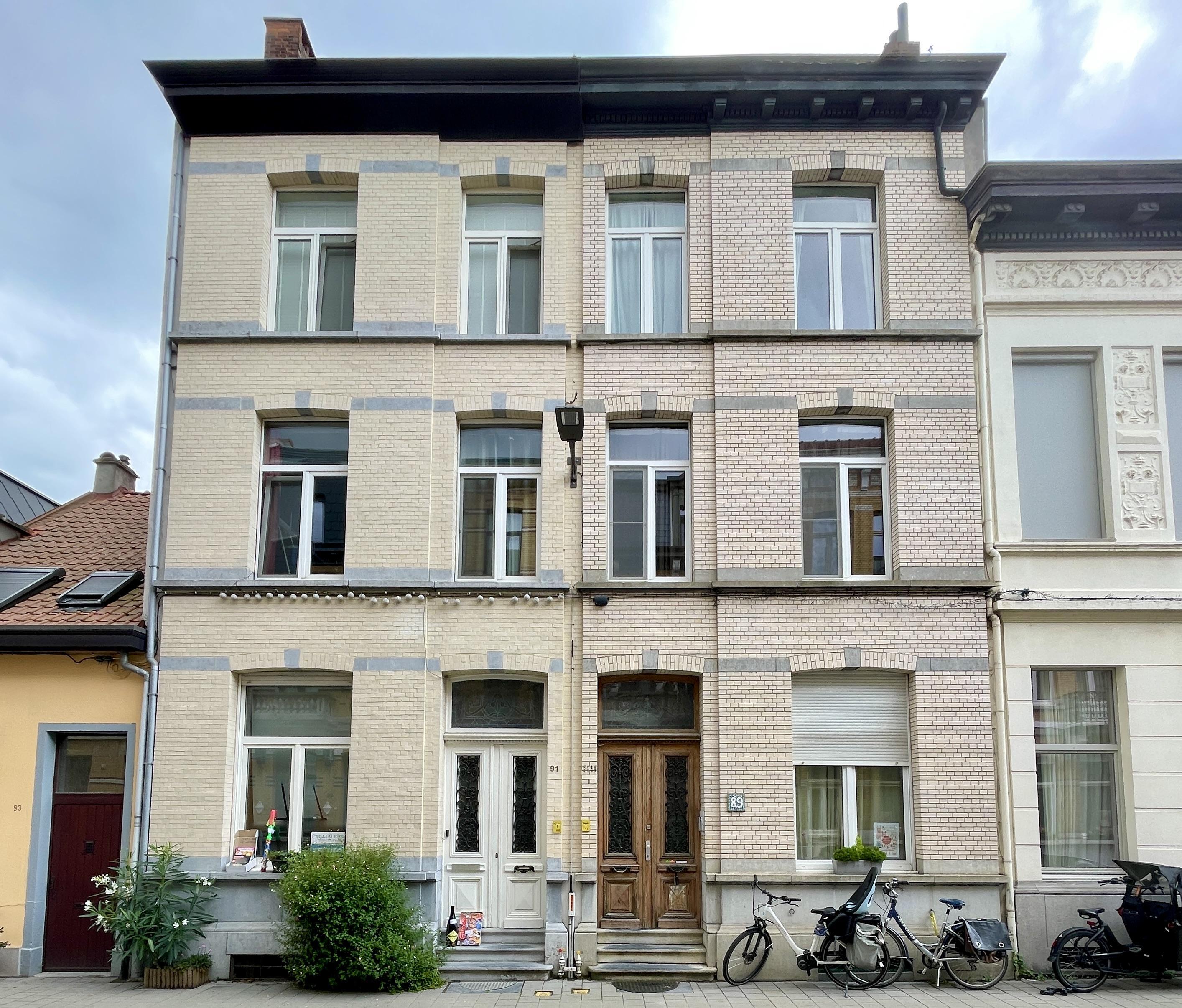 De afbeelding 'Gekoppelde burgerhuizen of meergezinswoningen in eclectische stijl' gemaakt door Braeken, Jo wordt ter beschikking gesteld door Braeken, Jo onder de volgende voorwaarden: Modellicentie voor gratis hergebruik, Naamsvermelding-GelijkDelen 4.0 Internationaal.