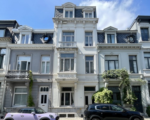 De afbeelding 'Geheel van drie gekoppelde burgerhuizen in neoclassicistische stijl' gemaakt door Braeken, Jo wordt ter beschikking gesteld door Stad Antwerpen onder de volgende voorwaarden: Modellicentie voor gratis hergebruik, Naamsvermelding-GelijkDelen 4.0 Internationaal.