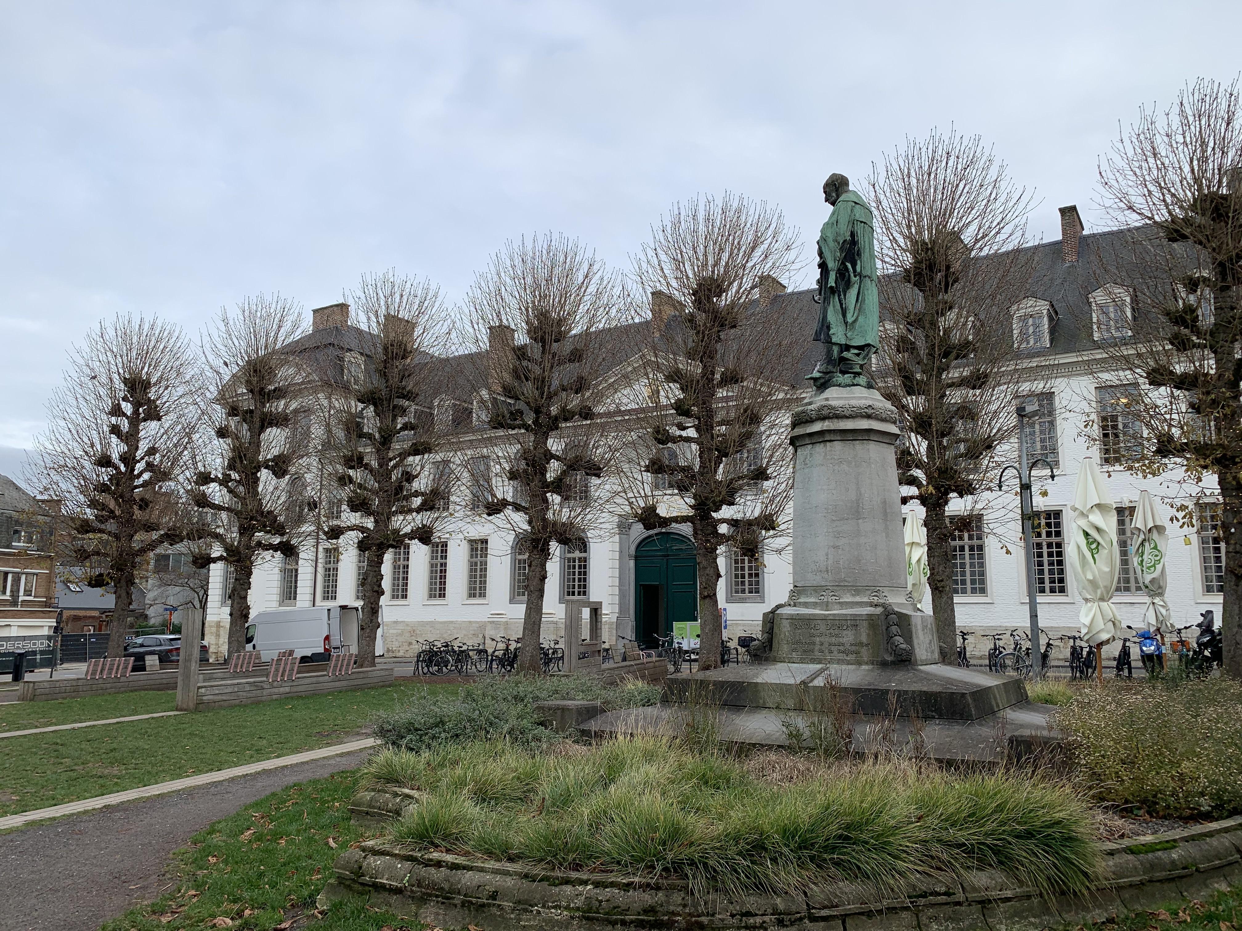 De afbeelding 'Centraal grasveld met standbeeld van André Dumont en omringend plantsoen' gemaakt door Schroyen, Heleen wordt ter beschikking gesteld door Agentschap Onroerend Erfgoed (AOE) onder de volgende voorwaarden: Modellicentie voor gratis hergebruik, Naamsvermelding-GelijkDelen 4.0 Internationaal.
