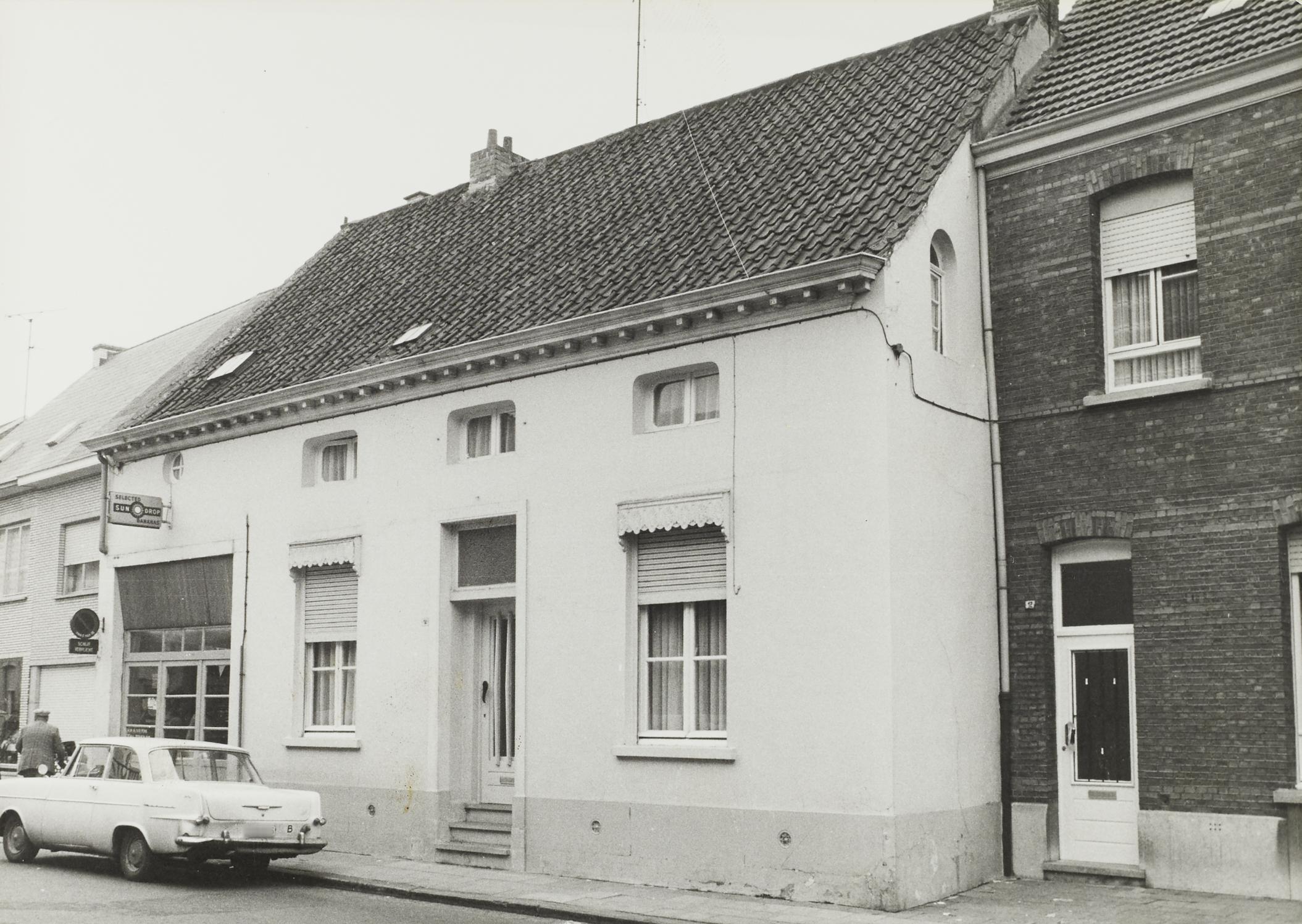 De afbeelding 'Dorpswoning met winkelpui' wordt ter beschikking gesteld door Agentschap Onroerend Erfgoed (AOE) onder de volgende voorwaarden: Modellicentie voor gratis hergebruik, Naamsvermelding-GelijkDelen 4.0 Internationaal.