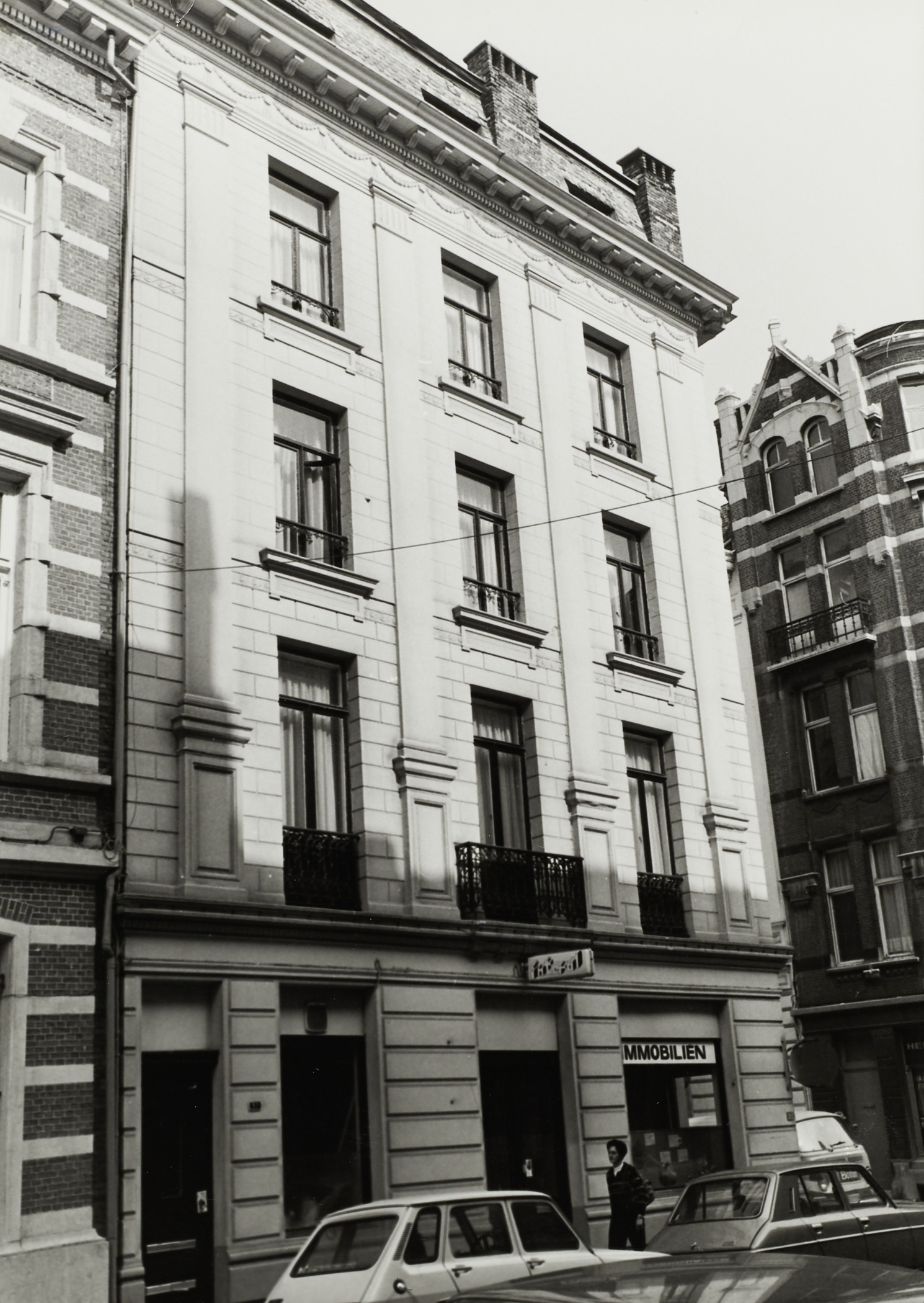 De afbeelding 'Winkelhuis in neoclassicistische stijl' wordt ter beschikking gesteld door Agentschap Onroerend Erfgoed (AOE) onder de volgende voorwaarden: Modellicentie voor gratis hergebruik, Naamsvermelding-GelijkDelen 4.0 Internationaal.