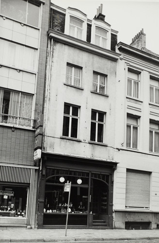 De afbeelding 'Rijhuis met art-nouveau-winkelpui' wordt ter beschikking gesteld door Agentschap Onroerend Erfgoed (AOE) onder de volgende voorwaarden: Modellicentie voor gratis hergebruik, Naamsvermelding-GelijkDelen 4.0 Internationaal.