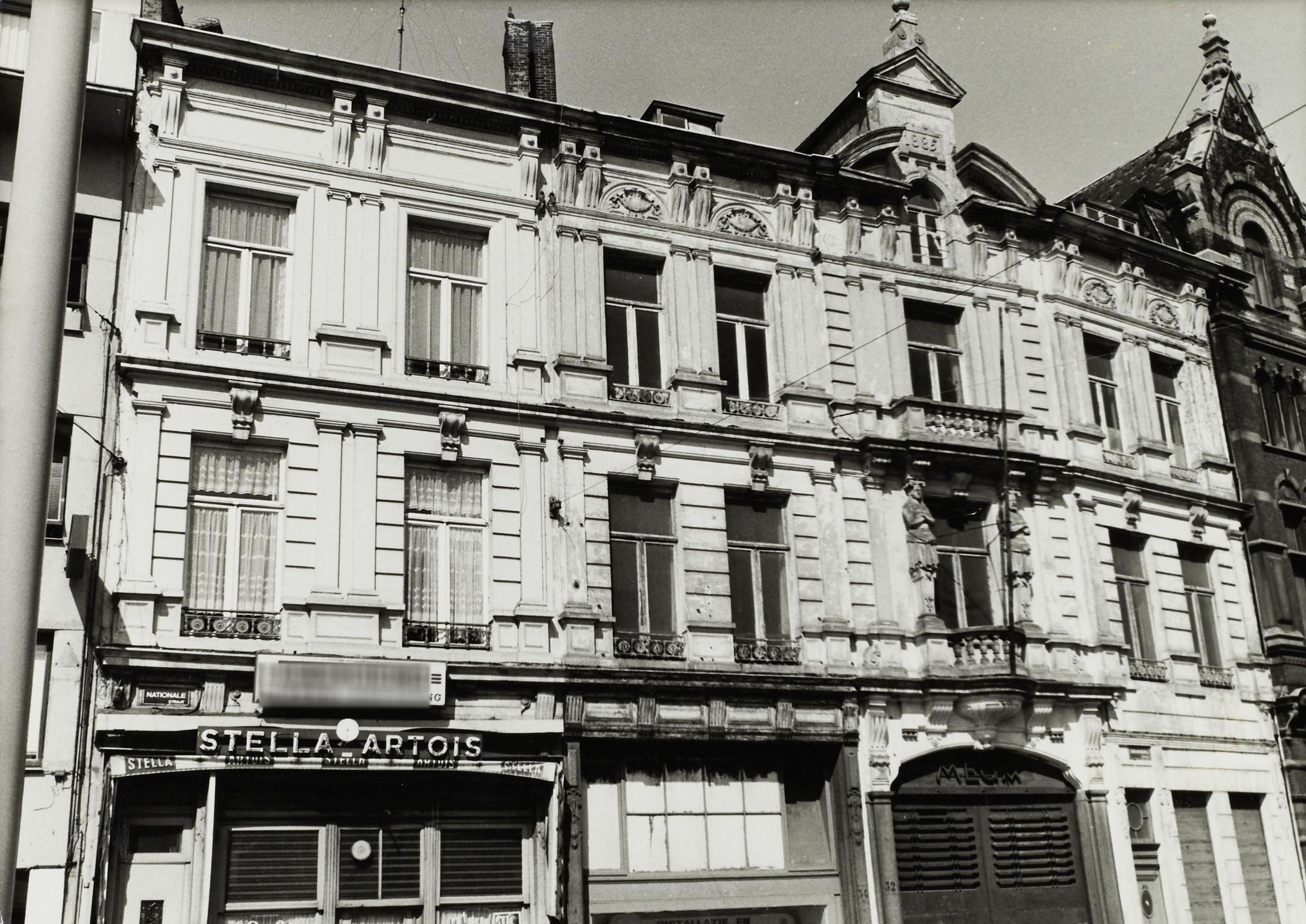 De afbeelding 'Nationalestraat' wordt ter beschikking gesteld door Agentschap Onroerend Erfgoed (AOE) onder de volgende voorwaarden: Modellicentie voor gratis hergebruik, Naamsvermelding-GelijkDelen 4.0 Internationaal.
