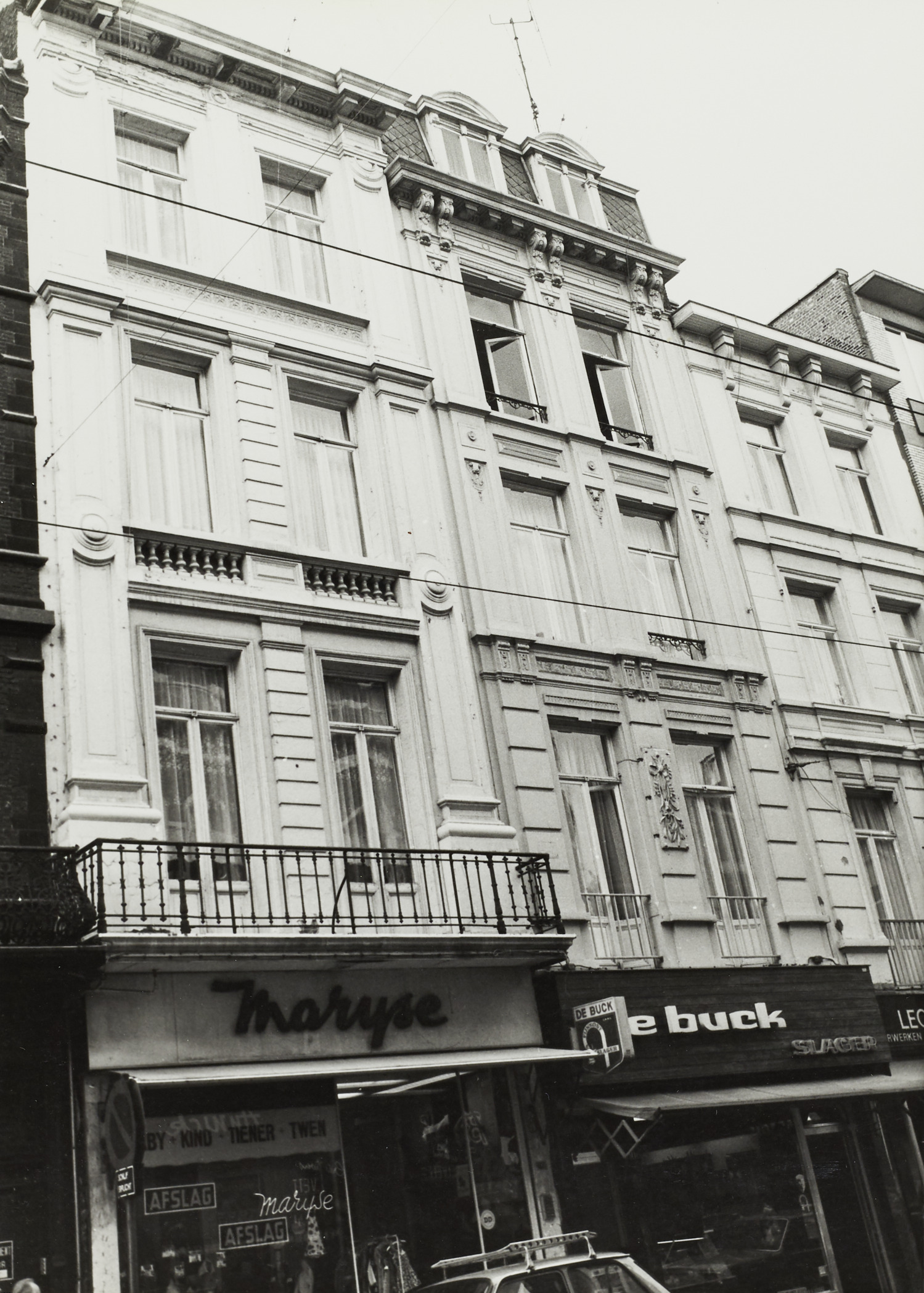 De afbeelding 'Twee winkelhuizen in neoclassicistische stijl' wordt ter beschikking gesteld door Agentschap Onroerend Erfgoed (AOE) onder de volgende voorwaarden: Modellicentie voor gratis hergebruik, Naamsvermelding-GelijkDelen 4.0 Internationaal.