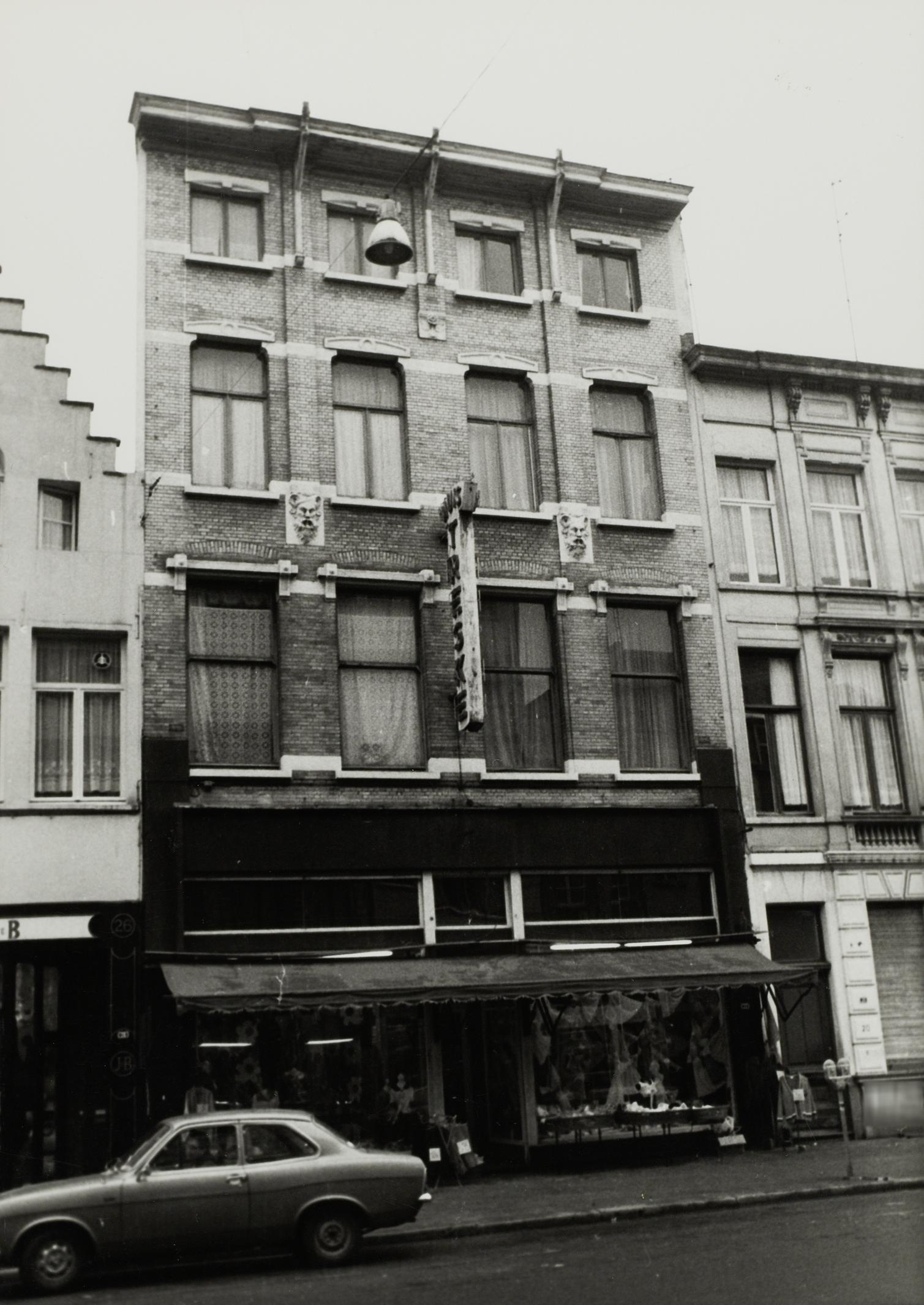 De afbeelding 'Winkelhuis in eclectische stijl' wordt ter beschikking gesteld door Agentschap Onroerend Erfgoed (AOE) onder de volgende voorwaarden: Modellicentie voor gratis hergebruik, Naamsvermelding-GelijkDelen 4.0 Internationaal.