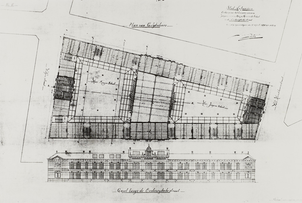 De afbeelding 'Lagere Jongensschool 22 en Lagere Meisjesschool 19' wordt ter beschikking gesteld door Agentschap Onroerend Erfgoed (AOE) onder de volgende voorwaarden: Modellicentie voor gratis hergebruik, Naamsvermelding-GelijkDelen 4.0 Internationaal.
