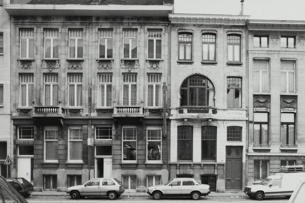De afbeelding 'Gekoppelde burgerhuizen in beaux-artsstijl - Burgerhuis in art-nouveaustijl' wordt ter beschikking gesteld door Agentschap Onroerend Erfgoed (AOE) onder de volgende voorwaarden: Modellicentie voor gratis hergebruik, Naamsvermelding-GelijkDelen 4.0 Internationaal.