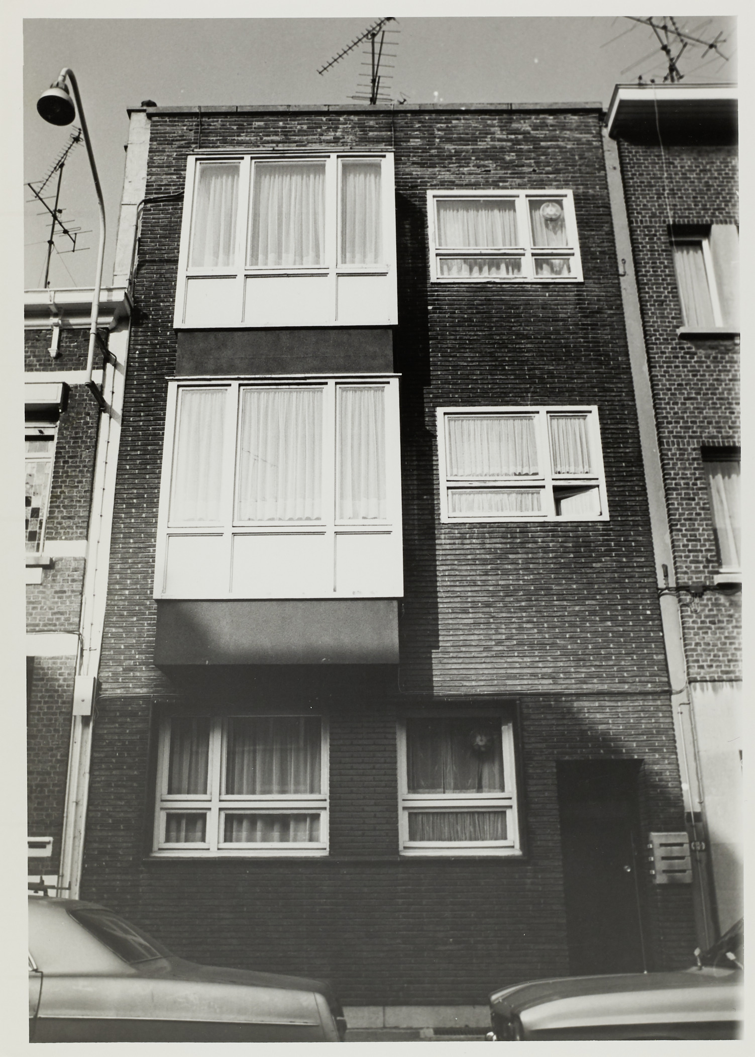 De afbeelding 'Meergezinswoning in nieuwe zakelijkheid' wordt ter beschikking gesteld door Agentschap Onroerend Erfgoed (AOE) onder de volgende voorwaarden: Modellicentie voor gratis hergebruik, Naamsvermelding-GelijkDelen 4.0 Internationaal.