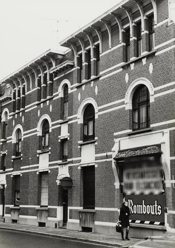 De afbeelding 'Hoekbebouwing met woningen en winkelhuis' wordt ter beschikking gesteld door Agentschap Onroerend Erfgoed (AOE) onder de volgende voorwaarden: Modellicentie voor gratis hergebruik, Naamsvermelding-GelijkDelen 4.0 Internationaal.