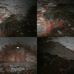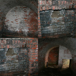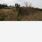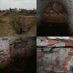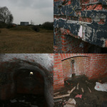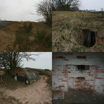 Oorlogslandschap met bakstenen constructies