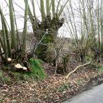 Heuvelland (Dranouter) Smijterstraat Gemengde houtkant met knotbomen op talud (2)