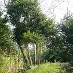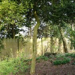 Op stam gezet palmboompje in pastorietuin