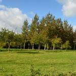Jonge fruitbomen in de boomgaard bij de kapel.