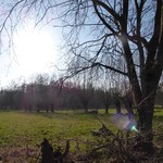 perceelsgrens gemarkeerd door gracht en opgaande bomen