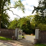 Tuinmuur en toegangshek van het herenboerenparkje van de Hamonthoeve.