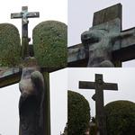Calvarie en lijnaanplanting van geschoren taxus en hulst