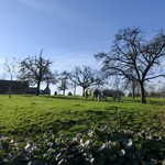 Borgloon, Grootloon, Grootloonstraat 101, Zicht over boomgaard naar kerk Grootloon